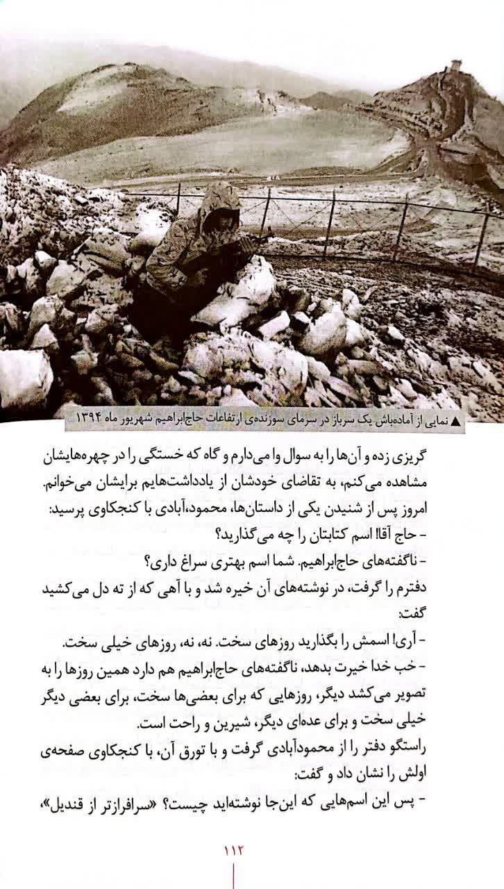 کتاب حاضر دقیقا تفسیر عملی همین آیه است. مردانی در پیرانشهر خدا را جست و جو میکردند و به مطلوب رسیدند و جاماندهها در آرزوی شهادت به خانطومان سوریه دل بستهاند تا به عهدی که با خدا بستهاند عمل کنند.