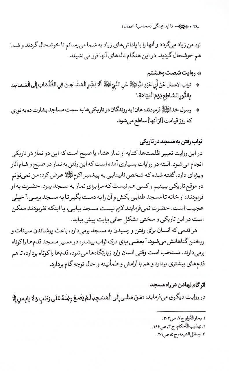 کتاب تا ابد زندگی در جلد یازدهم خود به شرح احادیث باب المعاد بحارالانوار و موضوع محاسبه اعمال میرسد. این اثر که برگرفته از سلسله جلسات تدریس استاد محمد رضا عابدینی است توانسته به خوبی مسأله معاد و دنیای پس از مرگ را به دنیای امروزمان بیاورد.