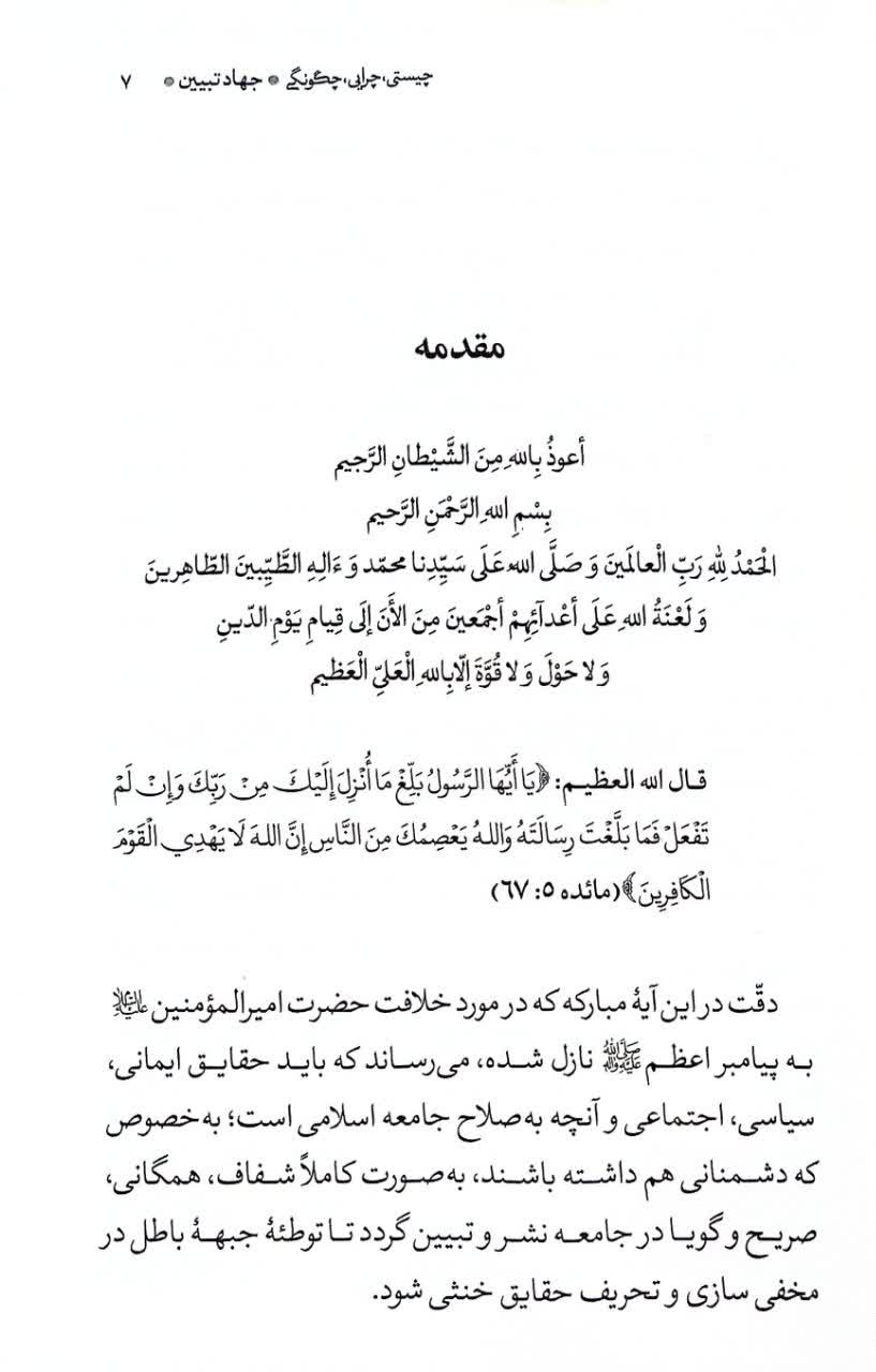 کتاب در فصل دوم خود با عنوان چرایی جهاد تبیین به ضرورتهای جهاد تبیین اشاره میکند. بر این اساس جهاد تبیین تکلیف مستقل الهی است. این مهم سبب گرهگشایی از کار دیگران میشود، زکات دانش است، نشانه محبت و شکرگزاری میباشد و در مسیر پاسبانی از حکومت جامعه را یکدل میسازد.