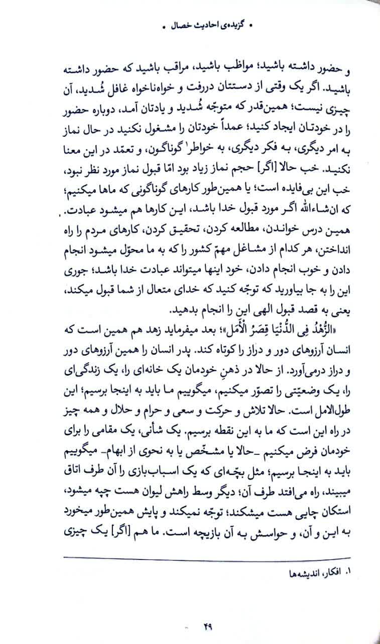 کتاب الخصال به انتخاب و شرح مقام معظم رهبری گزیدهای اخلاقی از احادیث کتاب شریف الخصال، تالیف شیخ صدوق، است که در ابتدای هر جلسه از درس خارج فقه، روح و جان طلاب را نورانی میساختهاست.