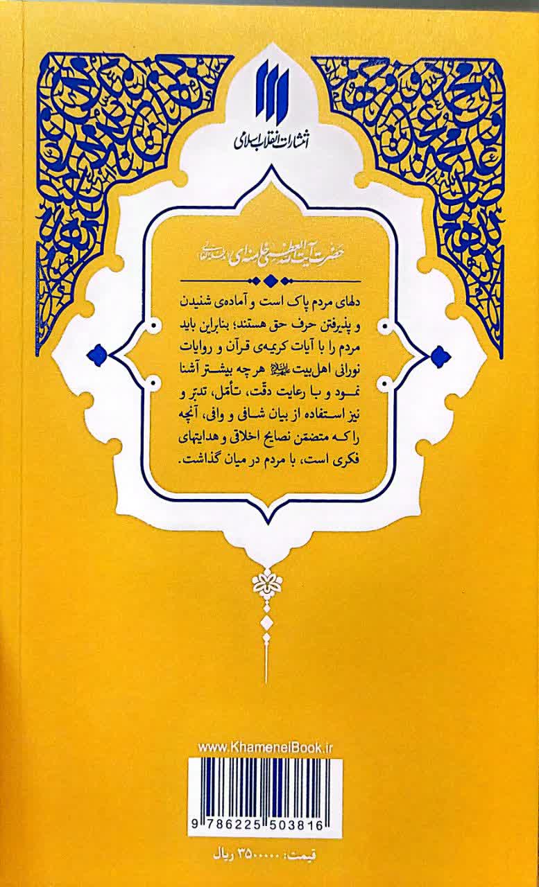 کتاب حاضر دقیقا گامی موثر در جهت چشاندن زیباییهای کلام معصومین است. این اثر که از اندیشه و کلام مقام معظم رهبری ساطع شدهاست با بیانی شیوا و گیرا توانسته بعد اخلاقی، اجتماعی و تا حدودی سیاسی احادیث را به جان بنشاند تا رهرو سیره معصومین شویم، آنچنان که امام رضا (ع) قولش را دادهاند. این اثر که یکی از مجلدات مجموعه چهار جلدی حدیث زندگی است به همت نشر انقلاب اسلامی منتشر شدهاست.