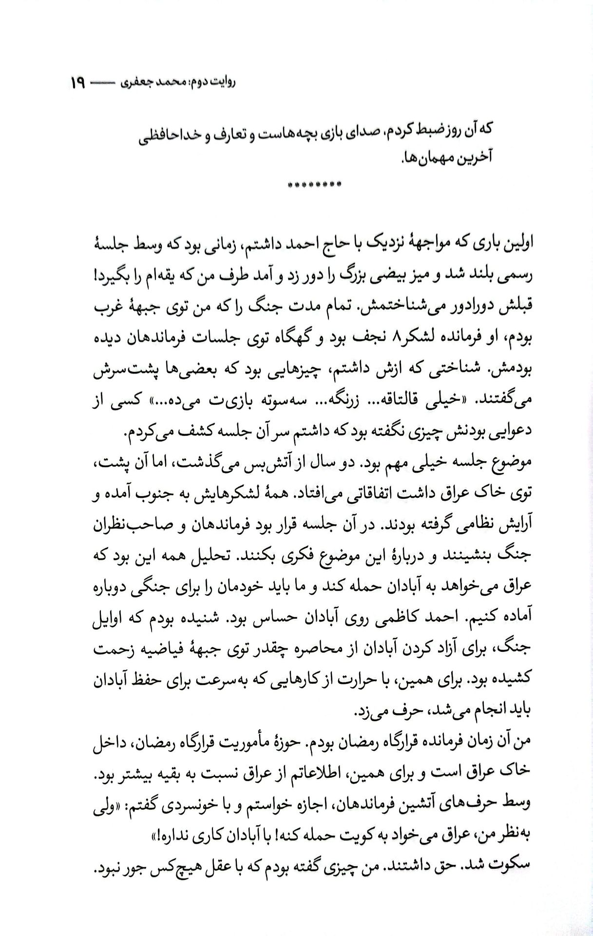 احساس کوچکی کردم از فکرهای مشوش خودم. از ترسهای کوچکم و نگرانیهای کماهمیتم. حاج احمد کجاها را میدید و من به چه چیزهایی فکر میکردم.