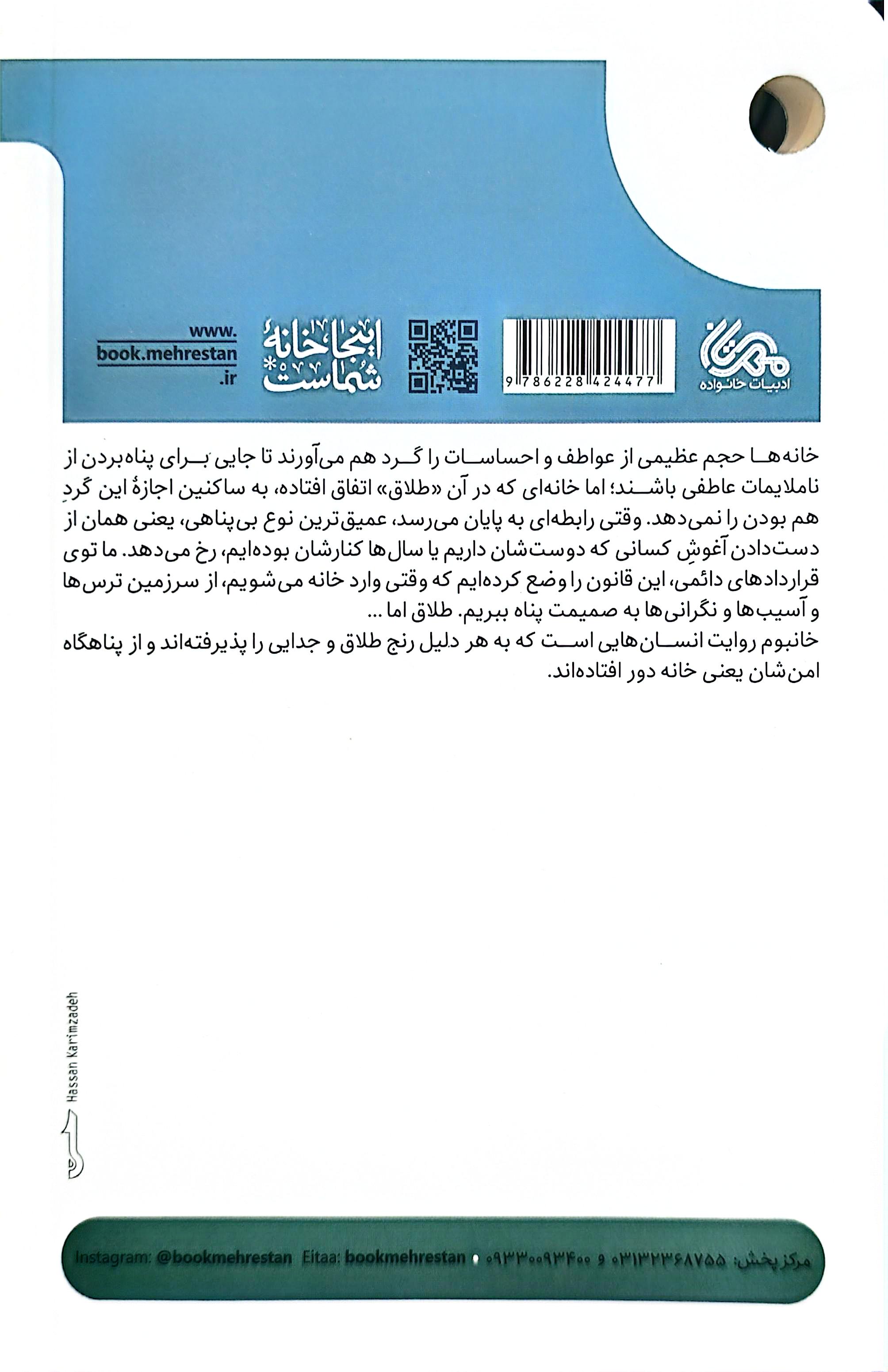 اگر طلاق این قدر بد است چرا طلاق را انتخاب میکنیم؟ شاید یک دلیلش این است که درکی از دنیای پس از طلاق نداریم. کتاب خانبوم این دنیای شوم را توصیف میکند، رنجهایش را بازگو میکند و درد فرزندان طلاق را ترسیم میکند. خانبوم نشان میدهد ما در قبال افرادی که اهلیمان میشوند مسئولیم. مسئولیم در برابر دلهایی که زیر یک سقف به آغوشمان گره خوردهاند. ما مسئولیم.