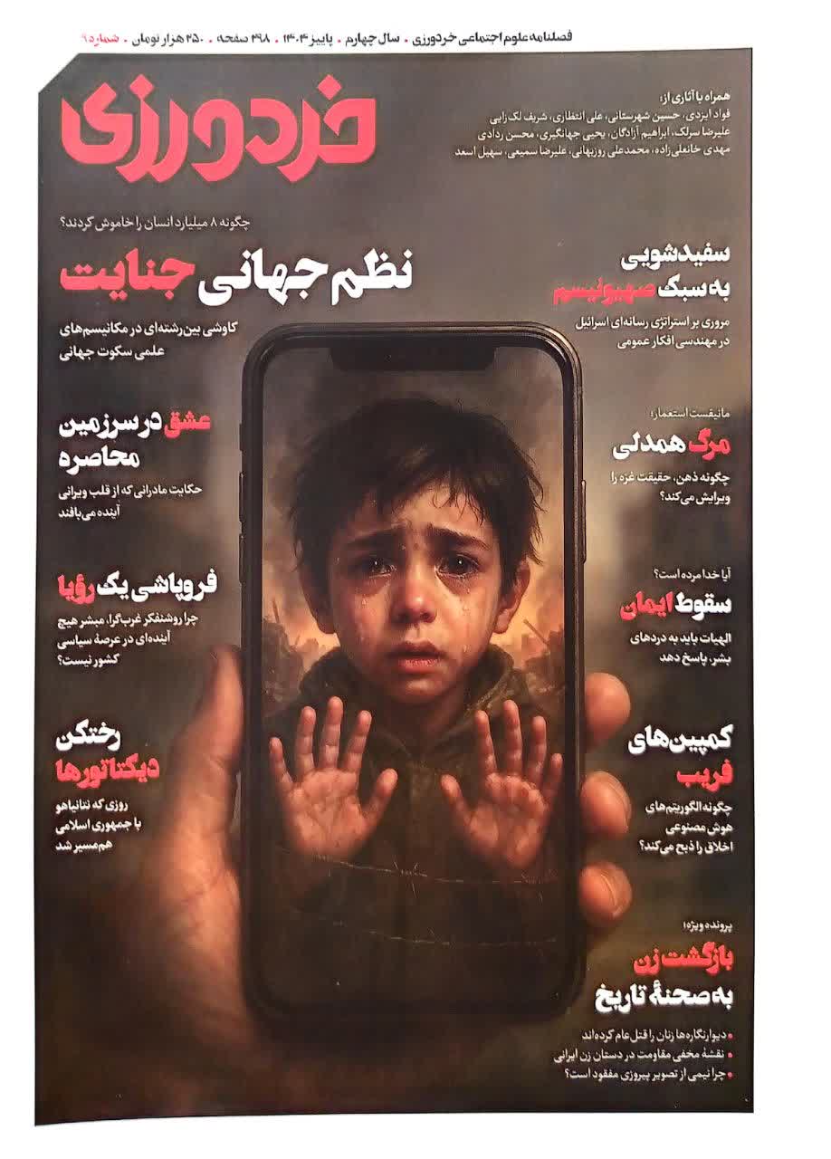 فصلنامه علوم اجتماعی خردورزی در شماره نهم خود در پاییز 1404 منتشر شدهاست از فلسطین، اسرائیل، صهیونیسم و غزه میگوید. اینکه چگونه هشت میلیارد انسان در برابر جنایات اسرائیل سکوت کردهاند؟ چگونه ذهن، حقیقت غزه را ویرایش میکند؟ جنایت جنگی اسرائیل چیست؟ رسانهها چگونه رنج فلسطین را بیاثر میکنند؟ و ... پاسخ همه این سوالات را در مجله خردورزی جستوجو کنید.