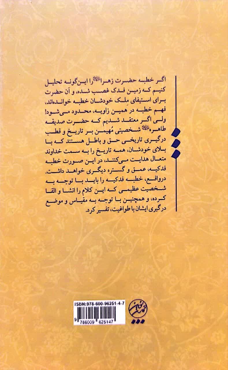 کتاب خطبه فدکیه به قلم استاد سید محمدمهدی میرباقری از مبانی معرفتی و زمینههای تاریخی این خطبه میگوید تا این خطبه را در سایه شناخت شخصیت حضرت زهرا (س) در حد یک اعتراض برای بازپس گیری زمین فدک ندانیم. در واقع این خطبه ملاک تشخیص حق و باطل است که همه تاریخ را به سمت خدای متعال رهنمون میسازد.