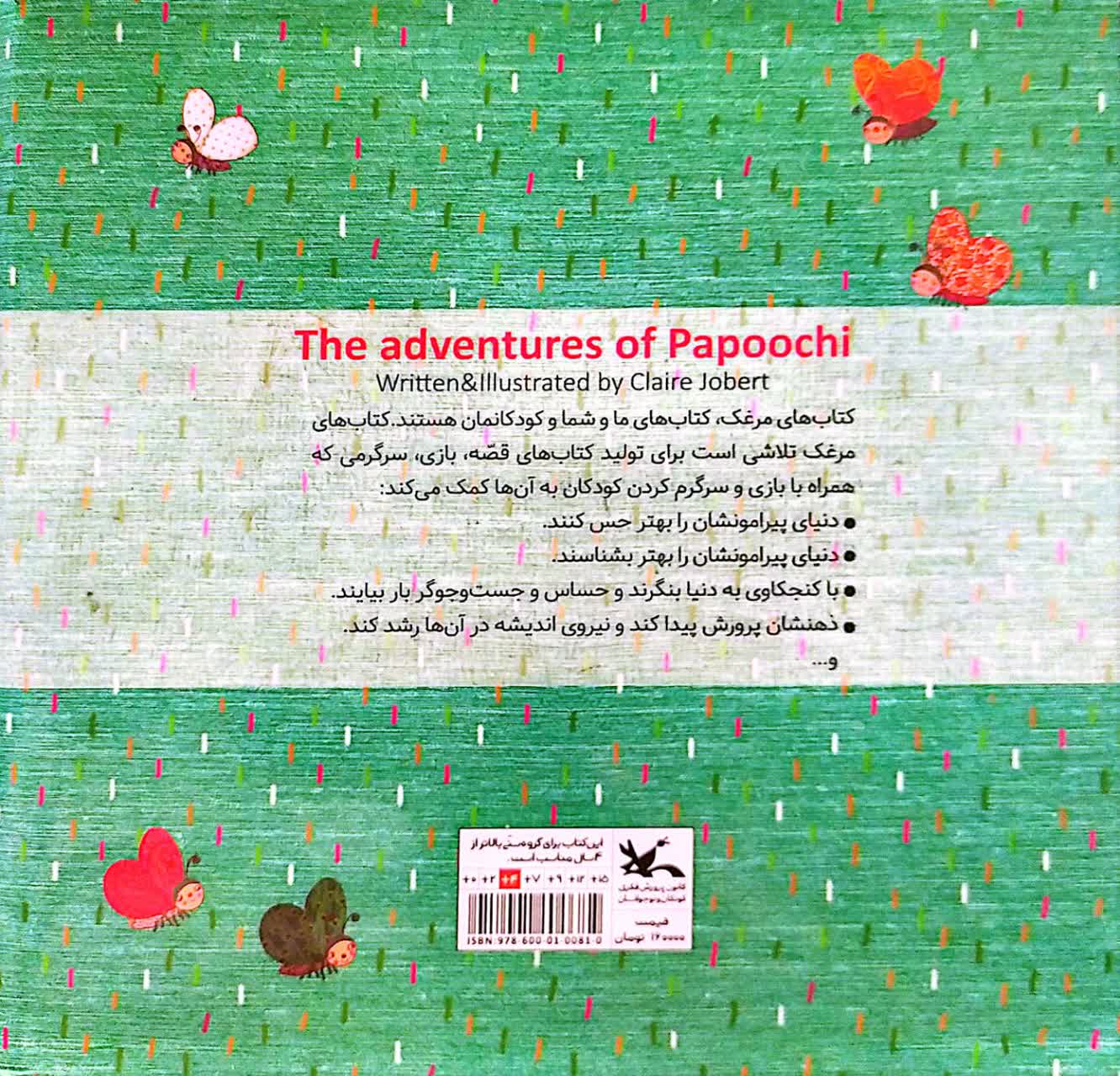 مجموعه پنج جلدی داستانهای پپوچی به قلم و تصویرگری کلر ژوبرت با بستهبندی زیبا برای کودکان بالای چهار سال نگاشته شده است. این مجموعه با عناوین «آش بلوط»، «یک عالم مداد رنگی»، «آینه»، «غصه پپوچی» و «درخت شکلات» از تعاون، همکاری، دوستی و محبت میگوید.