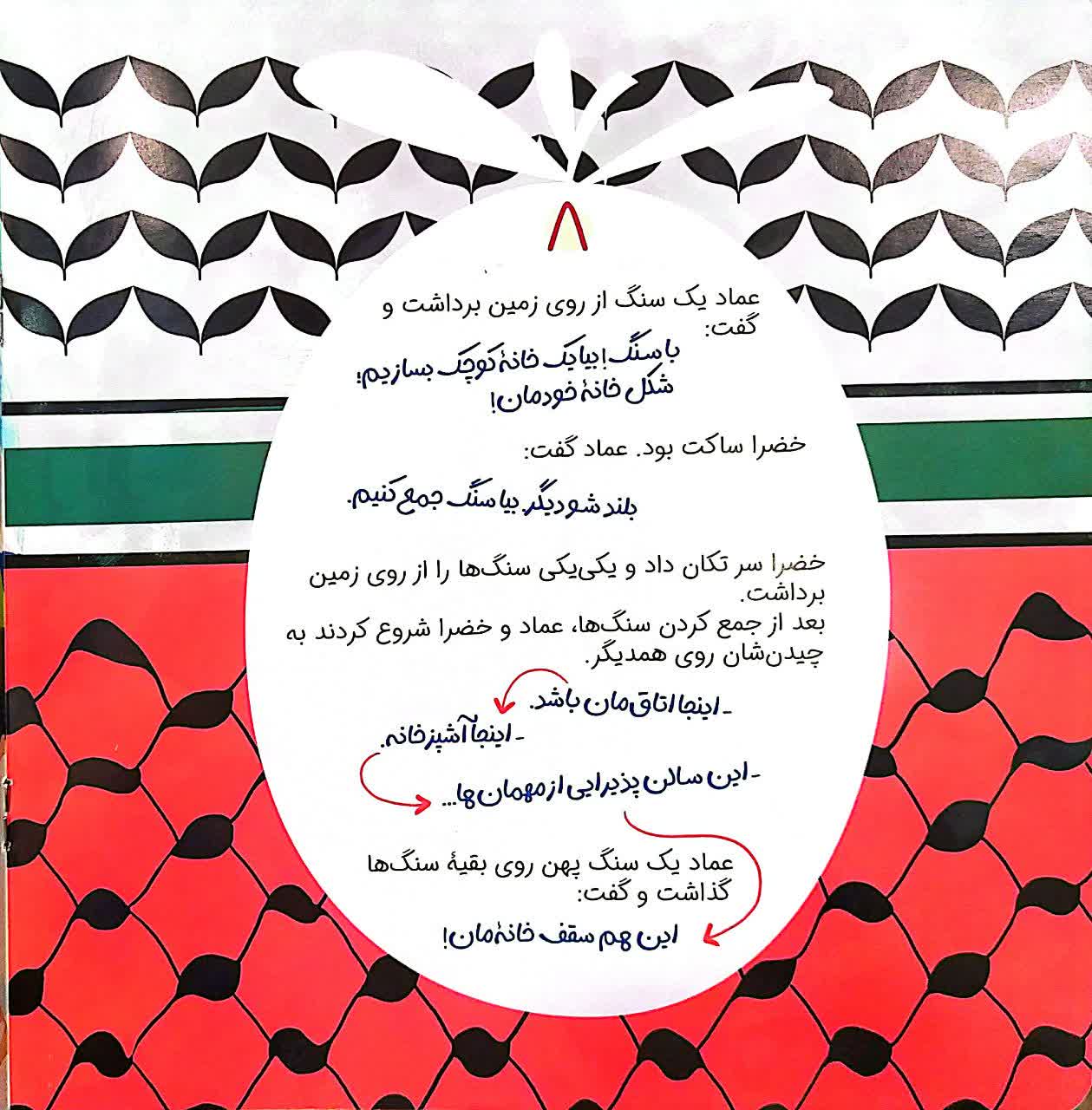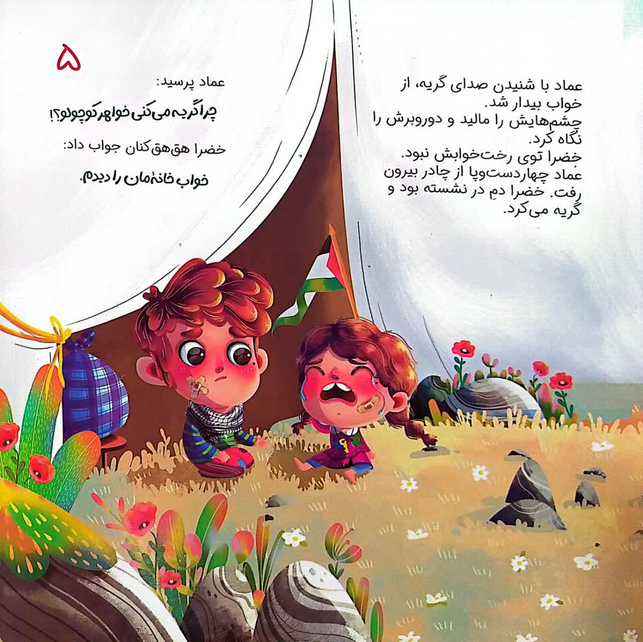 ساجده کارخانهای توانسته در این داستان کودکانه از رنج کودکان فلسطینی، آوارگی آنها بگوید. اما این تنها یک روی سکه است. روی دیگر آن امید است و تلاش که در داستان جاریست. در خلال تلاش کودکان فلسطینی، مخاطب با نقش ایران در حمایت از فلسطین مظلوم نیز آشنا میشود.