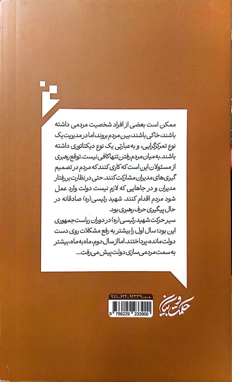 کتاب رئیسی عزیز؛ الگوی مدیریت تقوا محور با سیر در سیره شهید جمهور از الگویی بدیع و کارا در ریاست جمهوری اسلامی ایران رونمایی میکند. توقع رهبری از مسئولان این است که کاری کنند که مردم در تصمیمگیریهای مدیران مشارکت کنند، حتی در نظارت بر رفتار مدیران. اکنون کتاب حاضر به قلم حجتالاسلام علیرضا پناهیان راه دستیابی به این مهم را برآورده میسازد.