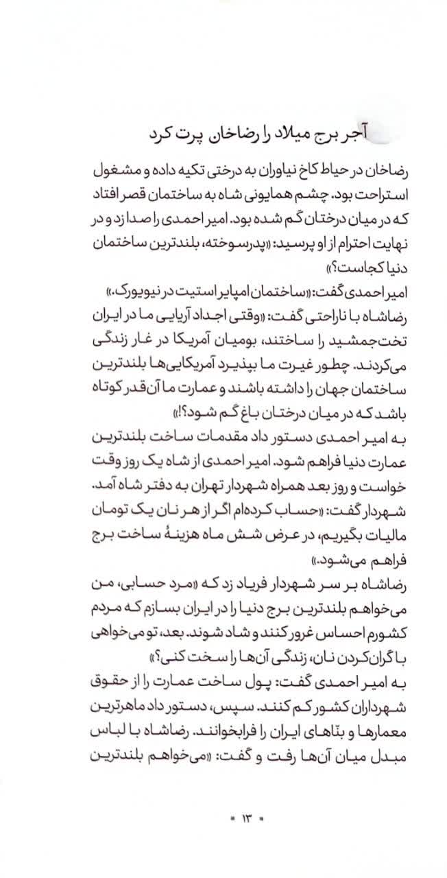 رضا شاه نگاهی به دست فروش انداخت و گفت: «حالا درست است که من دست و دل بازم؛ ولی آخر شال و روسری؟»