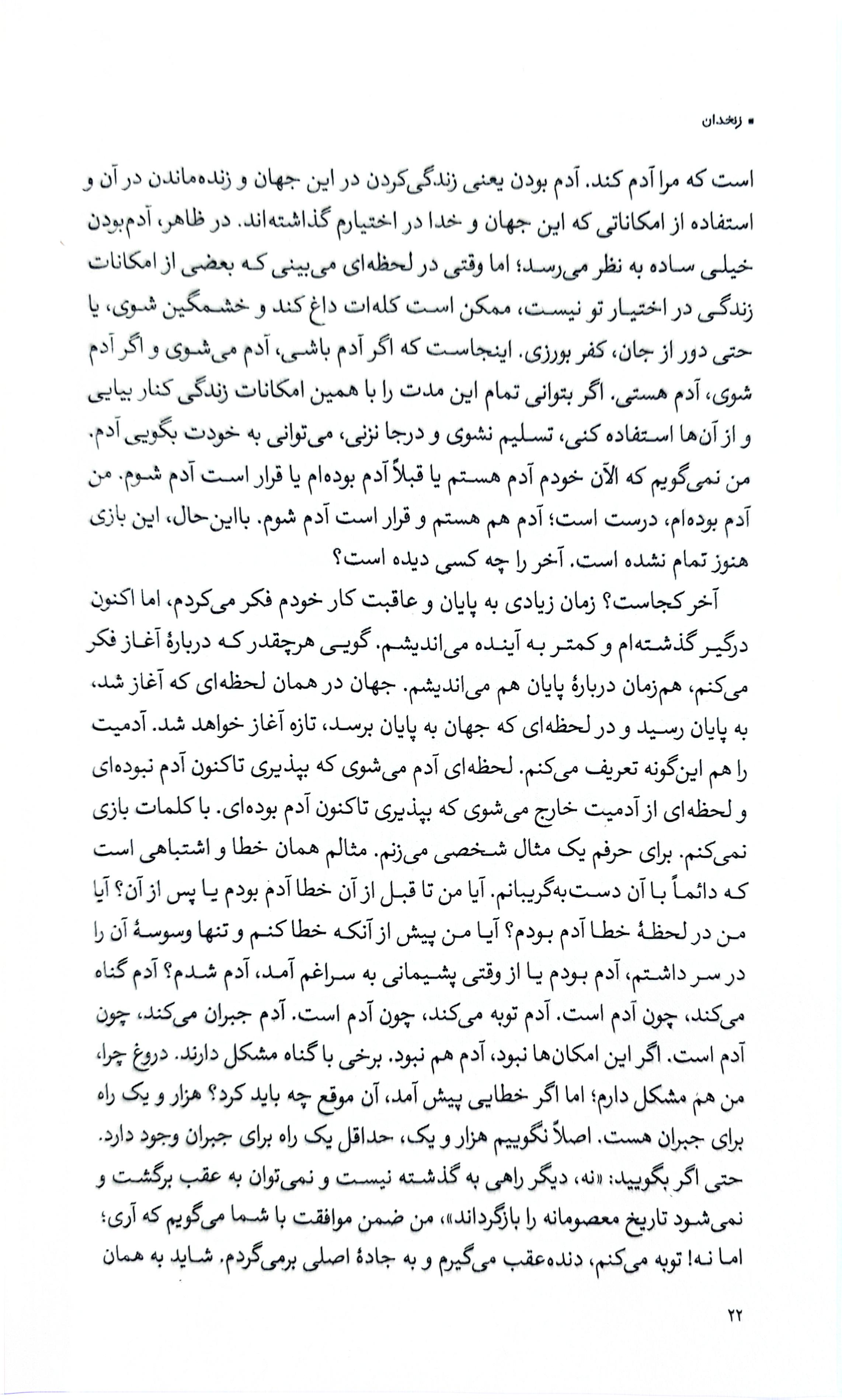 کتاب زنخدان از ماجرای یک سقوط میگوید، نخستین سقوط که تاکنون تمام فرزندان آدم نظارهگر آن بودهاند. برخی یا بهتر بگویم تمام ابناء بشر و حتی فرشتگان از این سقوط غصهها خوردند و در این میان ابلیس صدای خندهاش عالم بالا را پر کرد. داوود طالقانی در زنخدان برداشتی آزاد از قرآن کریم، روایات، تاریخ، ادبیات و اسطوره از ماجرای هبوط آدم، ارائه میدهد تا به تاملی در معنای وجود، مسئولیت انسان و رستگاری بپردازیم.