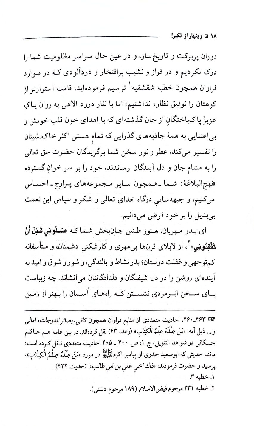 کتاب زینهار از تکبر: شرح بزرگترین خطبه نهج البلاغه در نکوهش متبکران و فخرفروشان