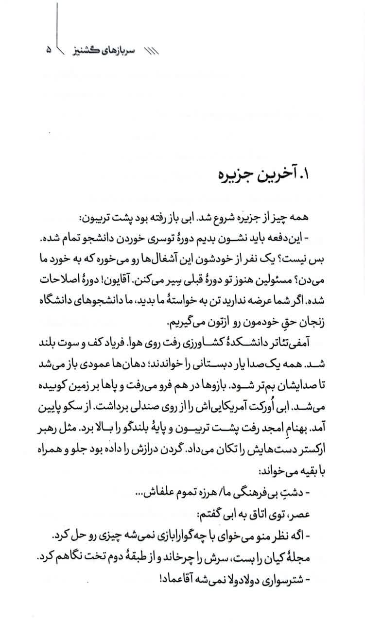 داستان از غذای نامطلوب دانشگاه شروع شد و ابی که باز رفته بود پشت تریبون. میگفت: «این دفعه باید نشون بدیم دوره توسری خوردن دانشجو تمام شده.» مثل اینکه قرار است دانشجویان دانشگاه زنجان حق خود را از مسئولین بگیرند. تشکلهای دانشجویی و انجمن اسلامی و شورای صنفی دانشجویان کار خود را با اعتراض به غذای سلف دانشجویی اعلام میکنند. اما این اعتراض چندان مسالمت آمیز ادامه نمییابد. یک نشریه با عنوان «خیزش سراسری دانشجویان دانشگاه زنجان علیه ظلم و ستم» از این اعتراض یاد میکند و آن را اعتراض به حکومت و نظام میداند.
