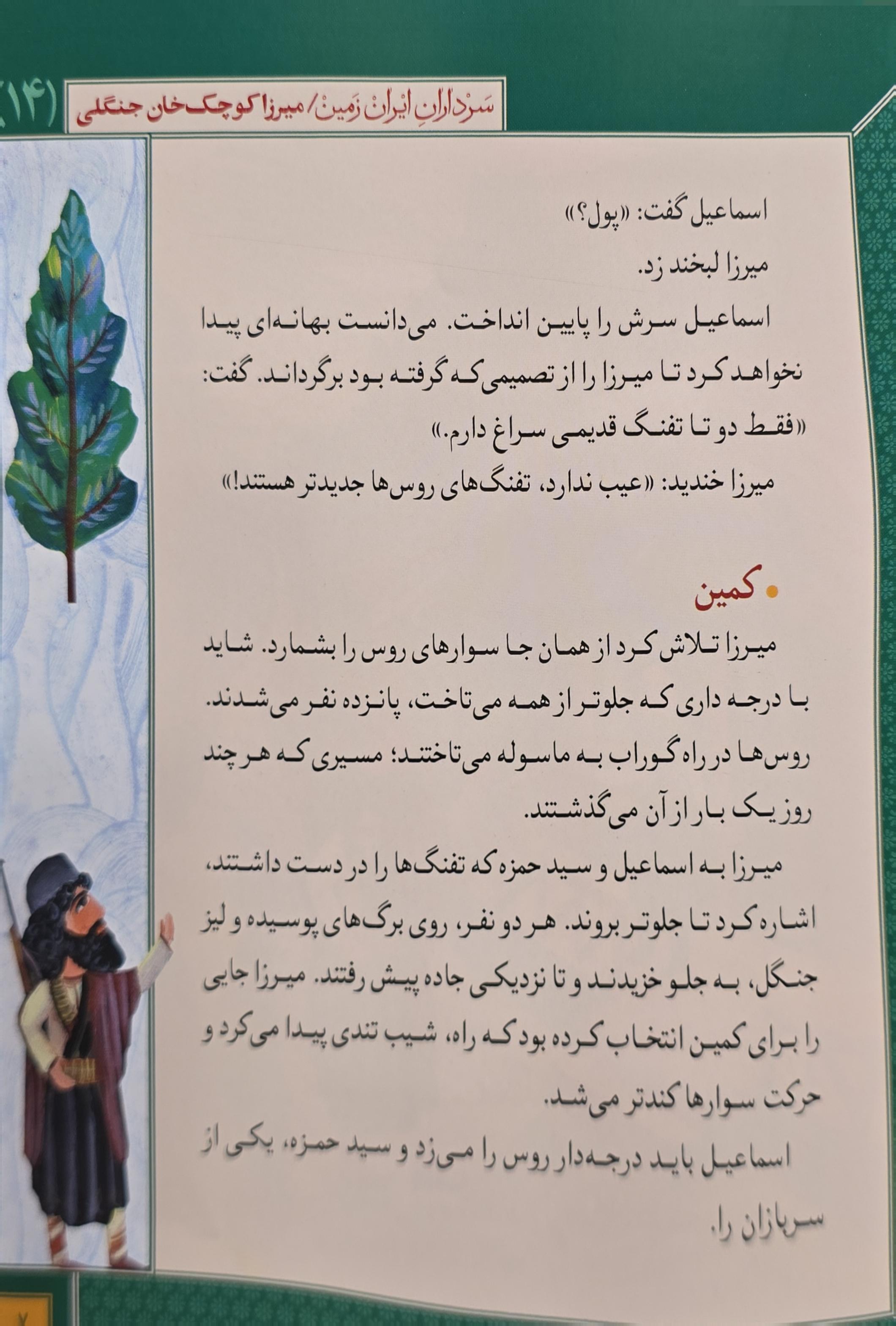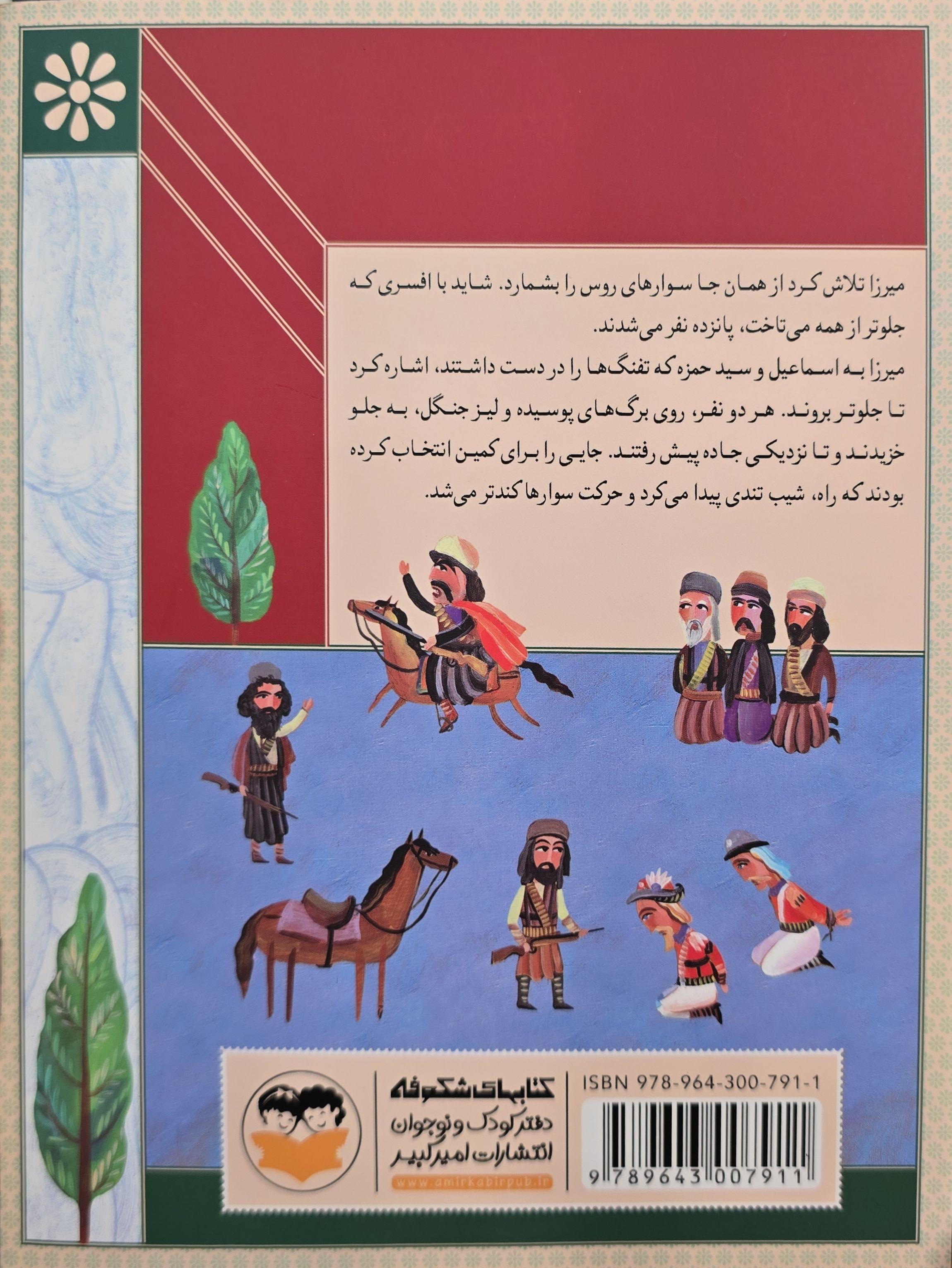 میرزا به اسماعیل و سید حمزه که تفنگها را در دست داشتند اشاره کرد تا جلوتر بروند. هر دو نفر روی برگهای پوسیده و لیز جنگل به جلو خزیدند و تا نزدیکی جاده پیش رفتند. میرزا جایی را برای کمین انتخاب کرده بود که راه شیب تندی پیدا میکرد و حرکت سوارها کندتر میشد.