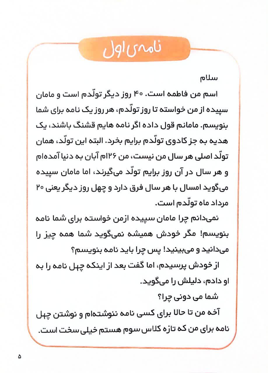 مامان سپیده در مراسم عروسی از من چند تا عکس گرفته بود که خیلی قشنگ شده بودم میخواستم عکسها را برای دوستانم بفرستم تا من را با لباس و موی قشنگم ببینند. اما مامان اجازه نداد و گفت: فاطمه جان دختر قشنگم از کجا معلوم که دوستانت عکس را فقط برای خودشون نگه دارند؟