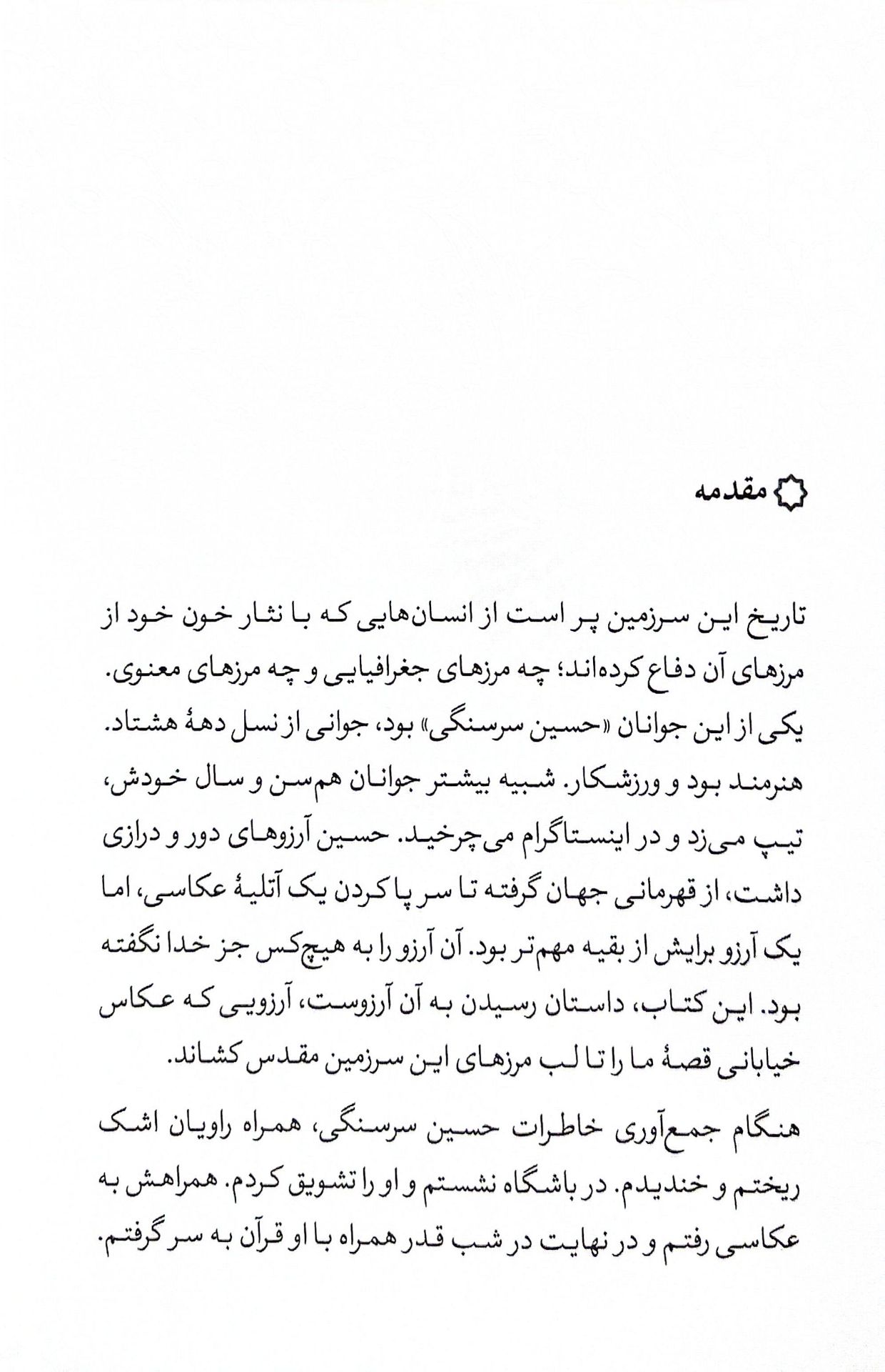 کتاب عکاس خیابانی به قلم محمد حیدری محمدی و کوشش محمدعلی جعفری از زبان پدر شهید روایت میشود تا حسین سرسنگیِ مدافع امنیت را به نوک قله دلهایمان بچسباند.