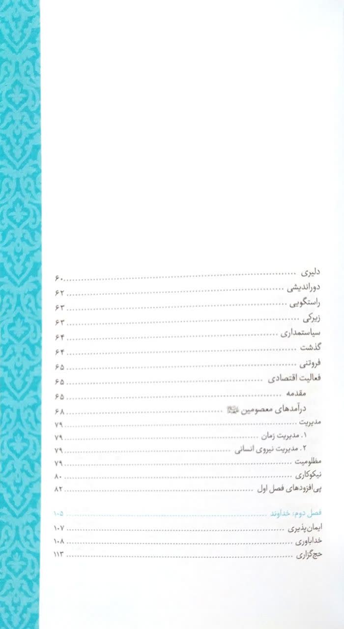در جهانبینی اسلامی انسان باید چگونگی رابطه خود با خداوند، طبیعت و دیگران را نیز مشخص کند. فصل دوم کتاب سیره حضرت را در برابر خداوند مشخص میسازد. معاداندیشی، روزهداری، قرآن خوانی، خداباوری پارهای از موضوعات مطرح شده در این فصل هستند.
