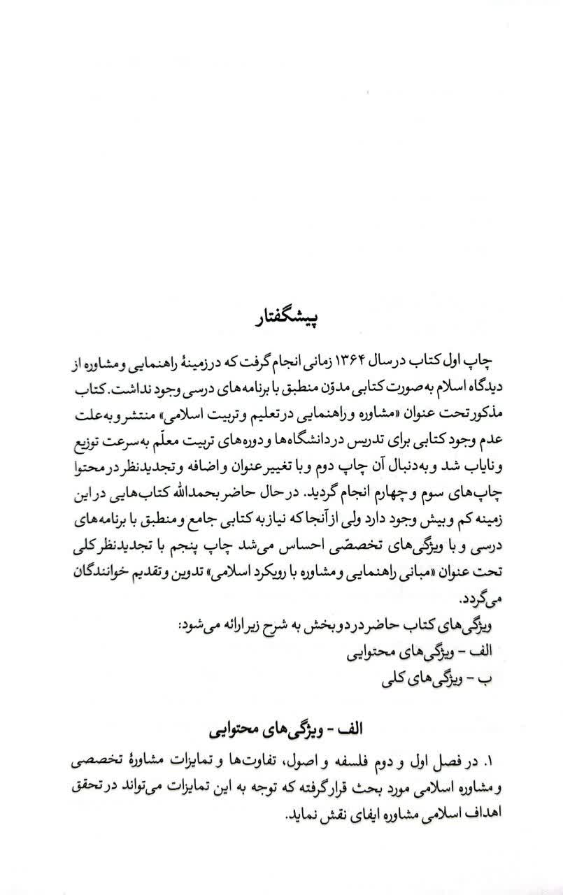 کتاب حاضر از آخرین جنبههای علمی در مشاوره بهره جسته است و مدعی است میتواند در ارتقاء بینش اسلامی و سطح علمی مخاطب تاثیرگذار باشد و مسیری تازه در روانشناسی اسلامی و آکادمیک فراروی مشاوران قرار دهد.