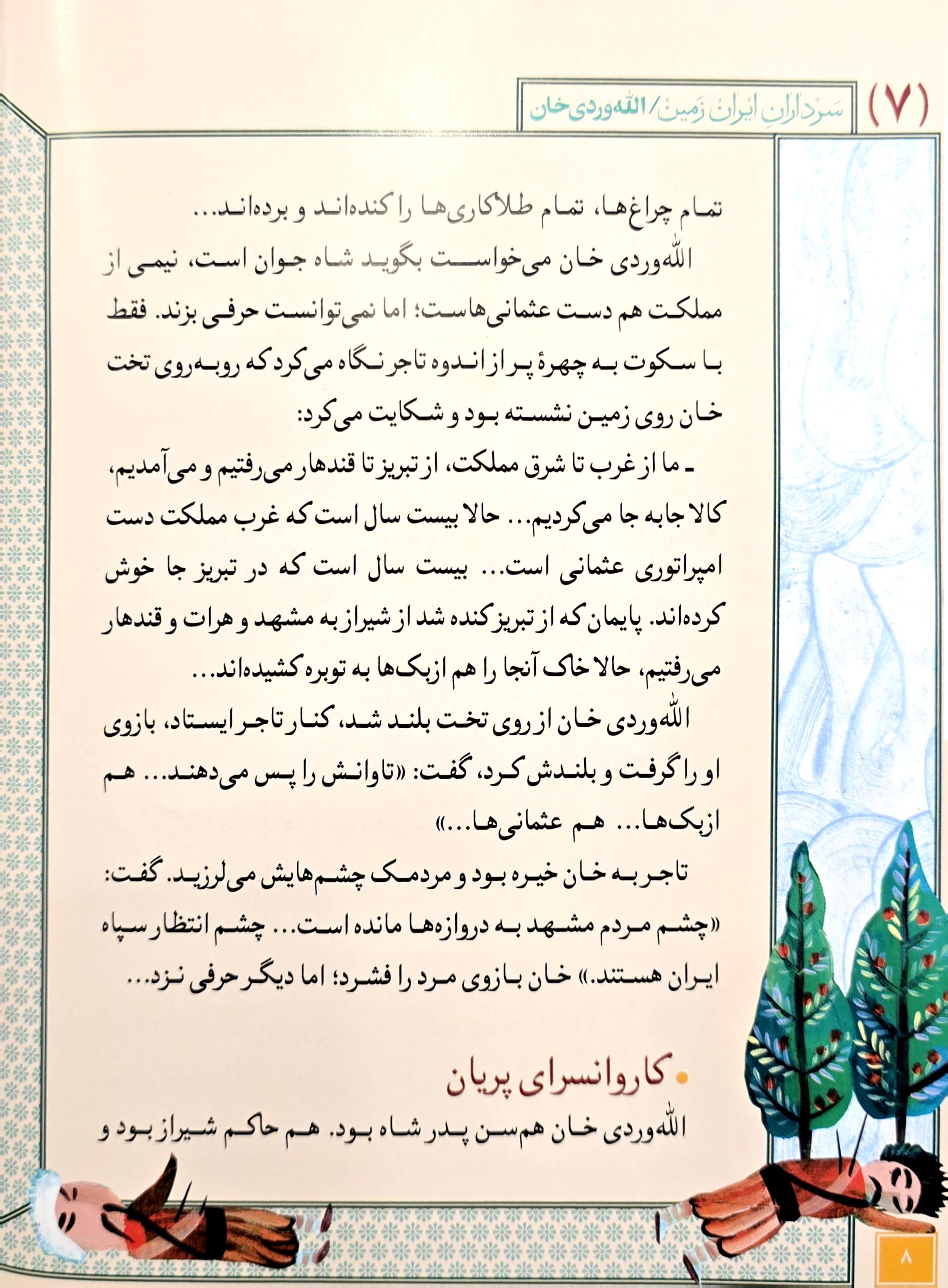 جلد هفتم این مجموعه زندگینامه الله وردیخان را روایت میکند. اللهوردی خان سپهسالار و فرمانده کل ارتش صفوی و حاکم ایالت فارس در دوران شاهنشاهی صفوی، بانی سیوسه پل اصفهان و مدرسه خان شیراز بود و اقدامات بیشماری در راستای اعتلای فرهنگ و تمدن ایران انجام داد.