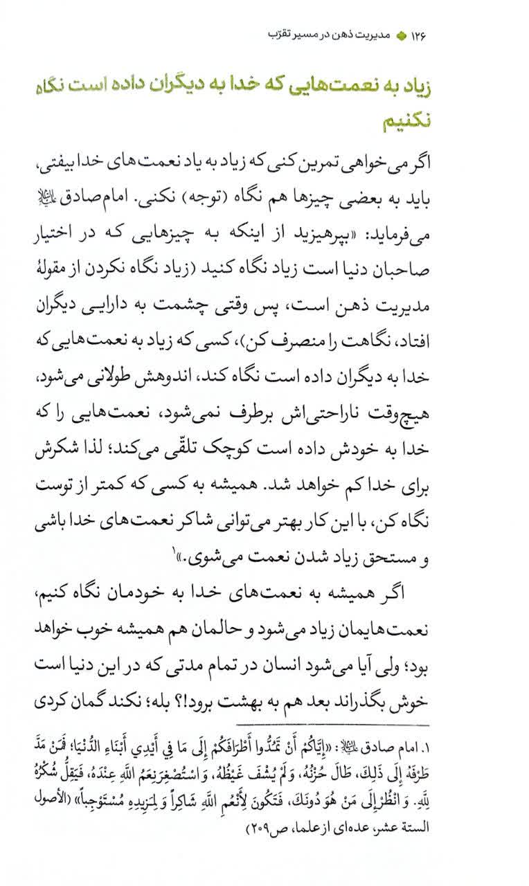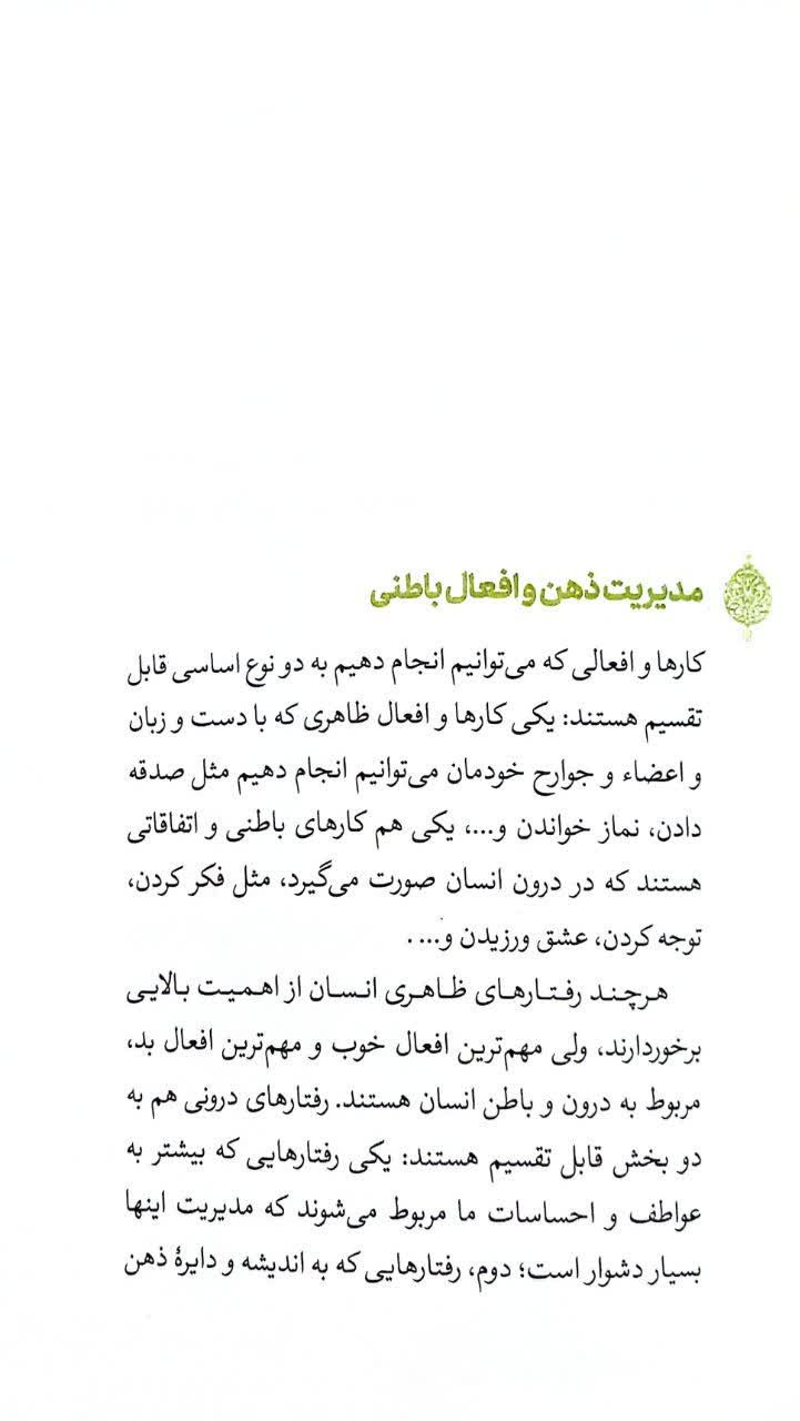 فصل سوم کتاب وارد عرصه عمل میشود و به چگونگی مدیریت ذهن میپردازد. استاد پناهیان نماز، یادخدا، شکر و غفلت را به عنوان چهار مسیر موثر در مدیریت ذهن واکاوی میکند و راه همواری را فراروی مخاطب قرار میدهد.