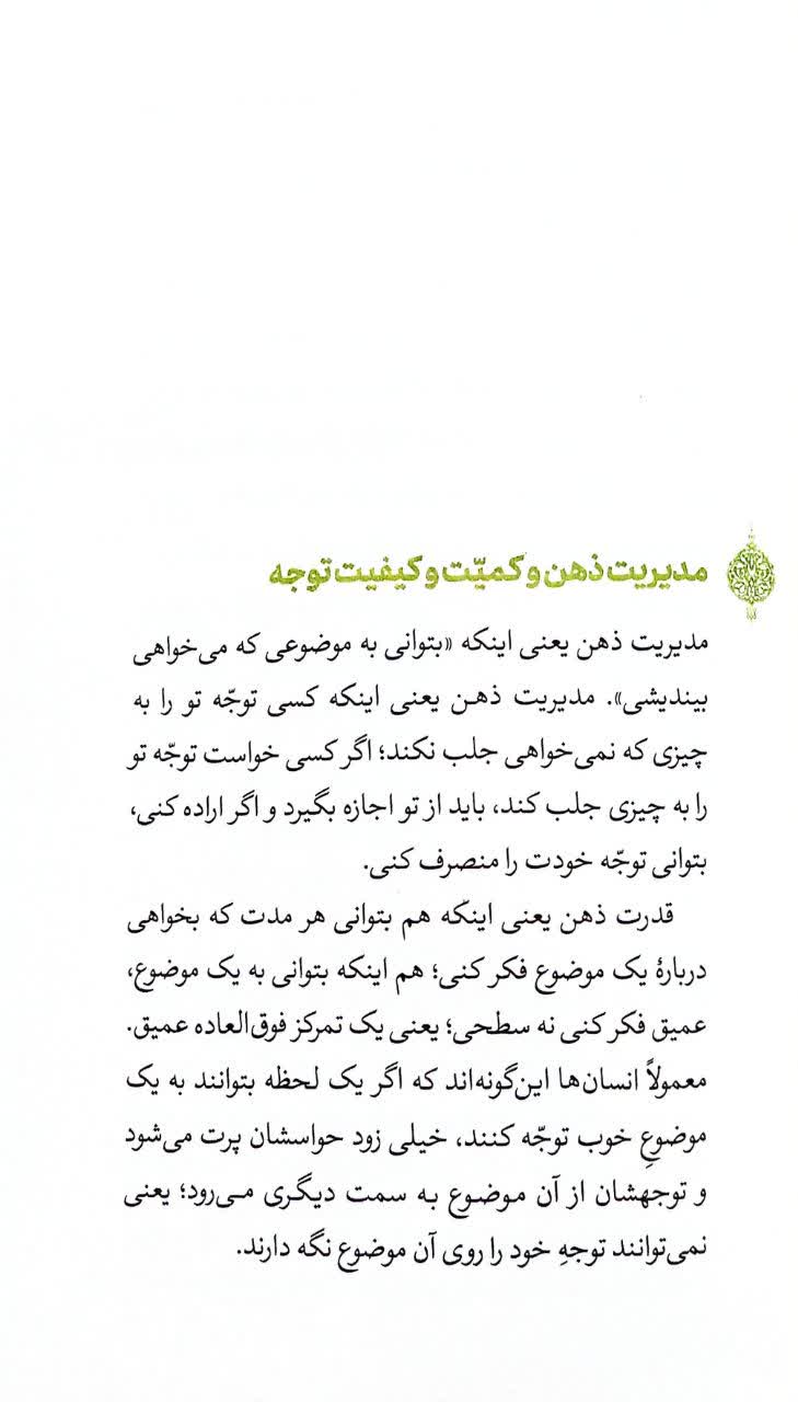 در آیات و روایات ما بسیار به تعقل تاکید شدهاست. اما در دنیایی که هزار و یک مشغله ریز و درشت ذهن ما را حتی هنگام نماز راحت نمیگذارند، چگونه رسیدن به این آرزو ممکن است؟ اصلا این مدیریت ذهن چیست؟ باید در راستای چه آرمانی متمرکز شود؟