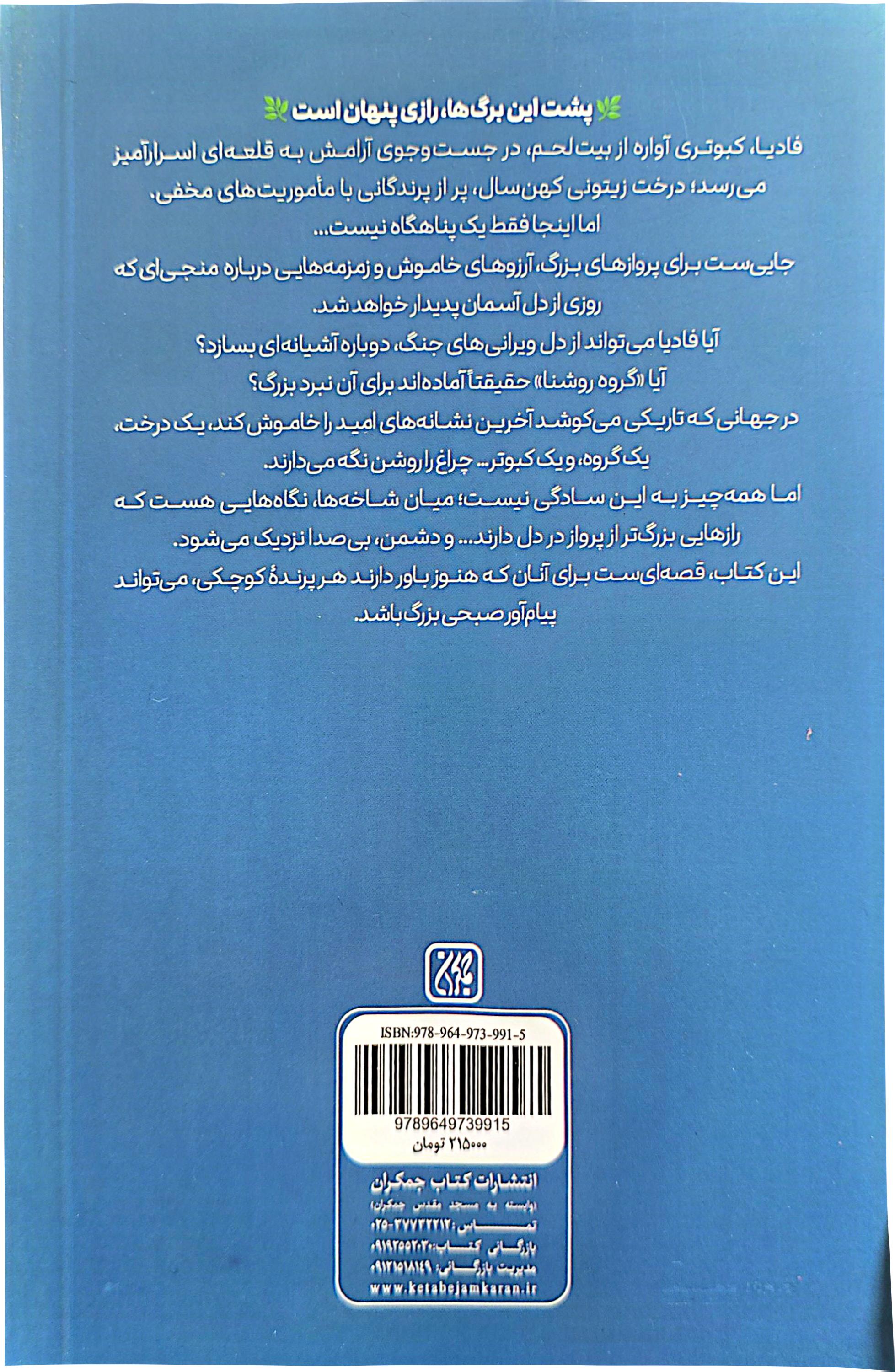 فادیا نام پرندهای است که برای چندمین بار لانهاش ویران میشود. هبه هر بار که این اتفاق میافتد، میگوید: «خدا ما کبوترها را این طور آفریده. زود دلمان جَلد آشیانهمان میشود.» اما این بار هبه و حرفهای دلگرم کنندهاش هم نیست. او تنهایی به درخت زیتون کهنسالی پناه میبرد. این پناهگاه که نمادی از فلسطین است پایگاهی برای پروازهای بزرگ، آرزوهای خاموش و زمزمههایی درباره منجی است. آیا فادیا میتواند از دل ویرانههای جنگ دوباره آشیانهای بنا سازد؟ اما همه چیز به این سادگی نیست. دشمن در یک قدمی اوست.
