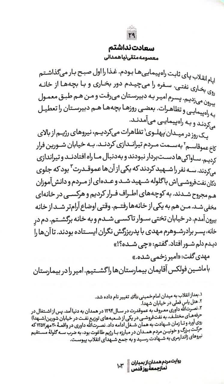 علاقهمندان به تاریخ شفاهی ایران، ادبیات پایداری و داستانهای واقعی این خاطرات کوتاه را از دست ندهند.