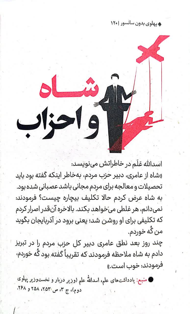 کتاب پهلوی بدون سانسور تلاش موفقی برای ایستادن در برابر این موج است. امرائی با اتکا به 41 منبع مختلف و بهره جستن از خاطرات درباریان، سیاستمداران مختلف، نشریات، خبرنگاران و ... اثری مستند فراهم آورده تا در حوزههایی نظیر اقتصاد، فرهنگ، اخلاق، خفقان و استبداد پهلوی را معرفی کند. استفاده از داستانهایی کوتاه در کنار تصاویری مفهومی و طنزآمیز بر کشش اثر میافزاید و مخاطب منصف را با خود همراه میسازد.