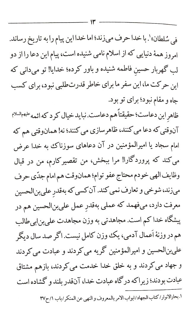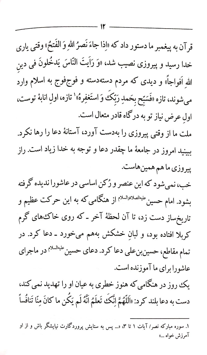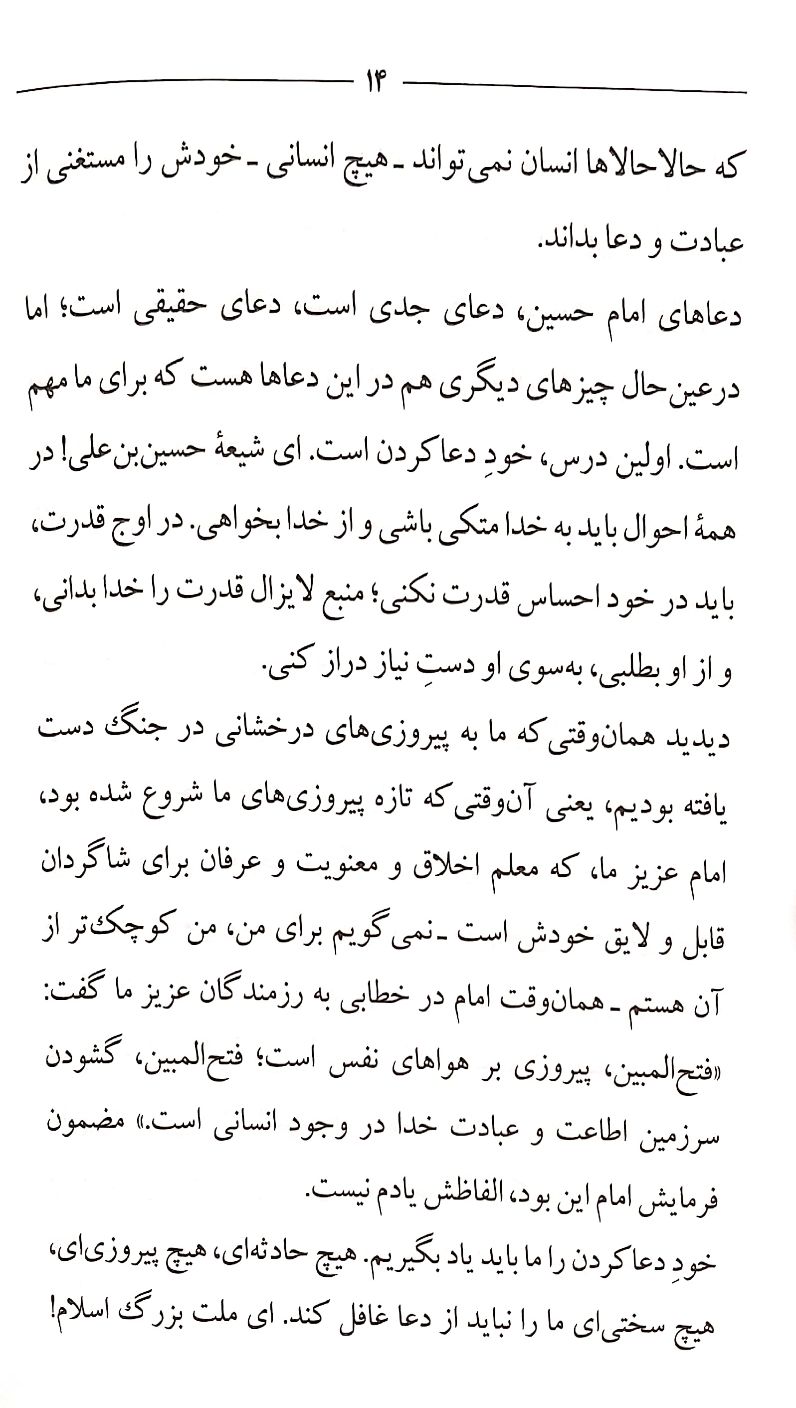 اینک مجموعه این دو سخنرانی در کنار یکدیگر، شخصیت الهی حضرت حسین(ع) را در کلام آیتالله خامنهای، به تصویر میکشد و خواندن متن پیادهسازی شده آن از نشر صهبا، فرصتی برای تامل بیشتر در برای پاسداری از آئین اسلام و انقلاب اسلامی است.